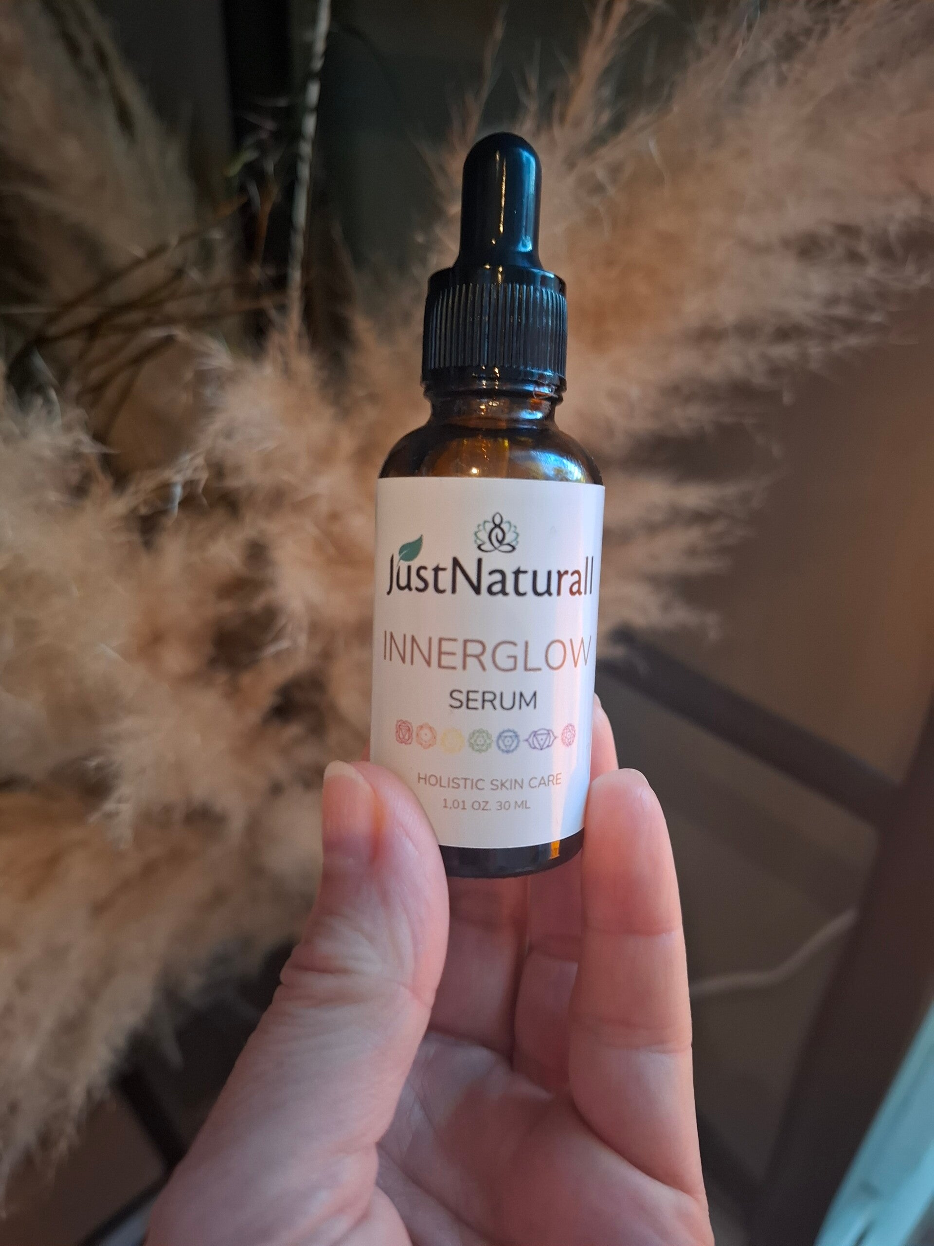 Ervaar de kracht van puur natuur met het Innerglow Serum, een harmonieuze blend van 100% natuurlijke oliën, zorgvuldig samengesteld om jouw huid, lichaam én innerlijke balans te voeden.
